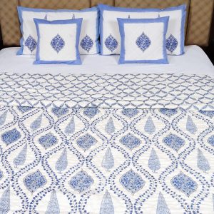 Hand Block Printing Jaipuri Razai for winter is hand-quilted and made of premium cotton fabric inside and outside. These skin-friendly, washable, eye-pleasing, and lightweight fleece blankets were once only used by the royal family. But, you can buy a blanket online today made using the finest materials and the same traditional quilting techniques but in modern and stylish patterns that will add galore to your home interiors. Choose from a wide range of winter quilts online in mesmerizing and artistic designs that will become an instant favorite in your bedroom. The minute details of the Jaipuri prints are sophisticated and luxe, making them perfect for daily use or gifting purposes. Buy quilts online for single beds, double beds, and even for newborns. From classic Jaipuri design to reversible quilts, you can choose from a wide range of options. Blanket Buying online is made convenient and hassle-free on our platform. Purchase the best quality blankets online in India at the best price and get them delivered to your doorstep in no time. Our appealing winter quilts will be your perfect partner to beat the chill so that you stay warm and cozy! Take a look at our wide range of winter quilts online and find the perfect fit for you.